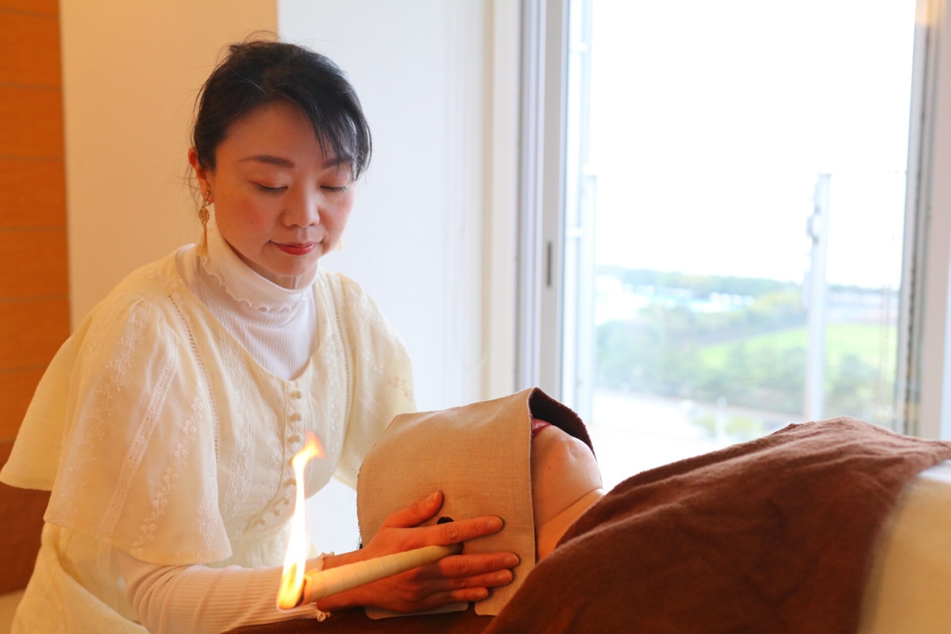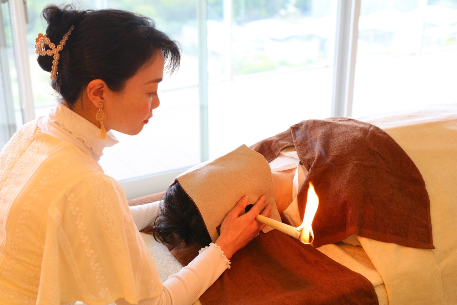 施術中は不思議な感覚でした。おへそのときは宇宙と繋がっている感じがしました。耳の施術にうつるとまたまた違った感覚でした。お香のようなほのかな良い香りと、チリチリと耳心地のよい波動のような可愛らしい燃える音が、ぐるぐるとエネルギーの渦となって入ってきます。おへそも耳も不思議な穴だなと。口や鼻や眼のように普段から主張している「穴」ではないけれど、ちゃんと大切な肉体の入口だなーと感じました。